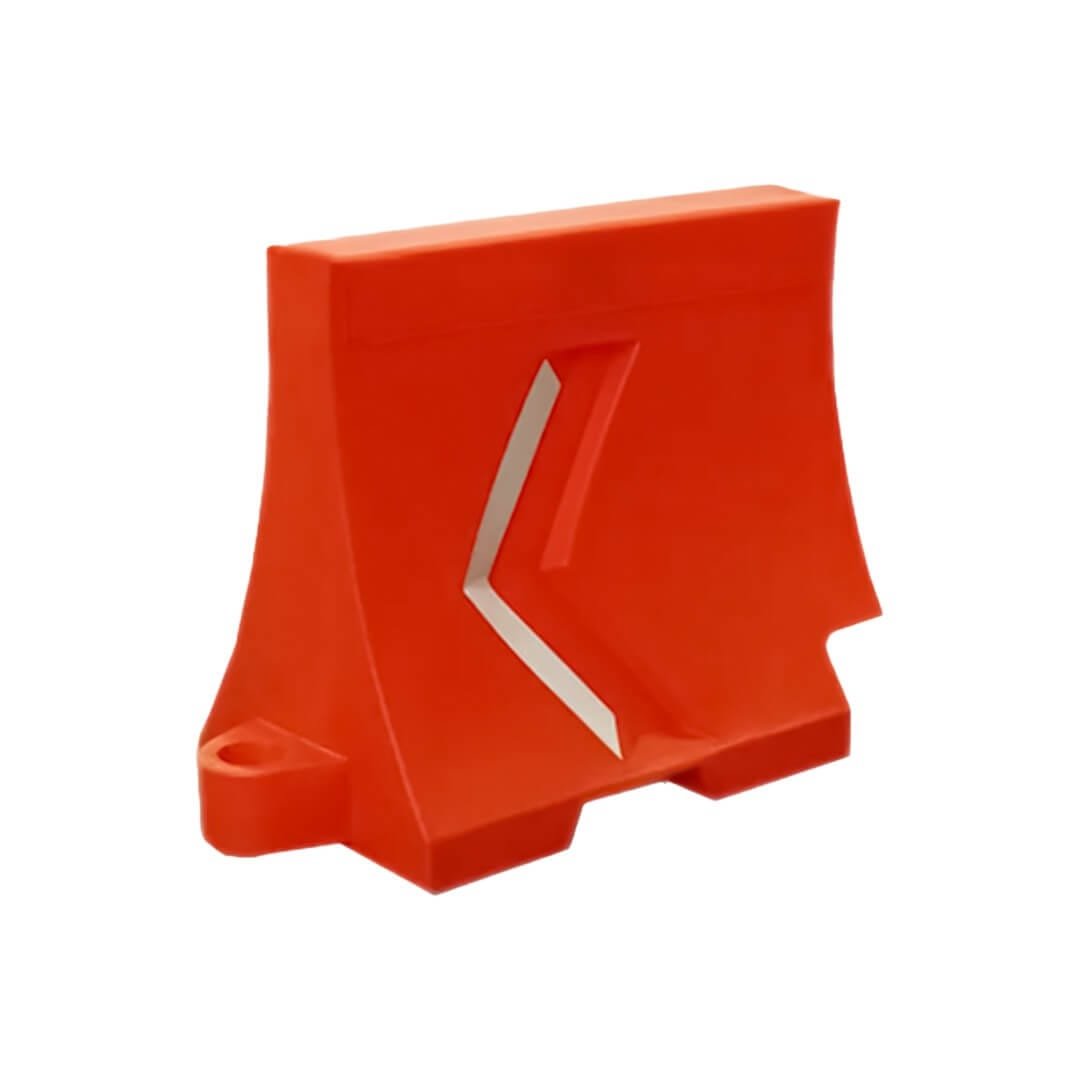 Descripción: Elaborado en polietileno de media densidad, 100% virgen y con aditivo UV. Elaborado en una sola pieza. Confeccionado mediante rotomoldeo, de uso industrial. Color: naranja. Diseñado para un apilamiento rápido. Cumple con las especificaciones oficiales de diseño, tamaño y funcionalidad. Medidas: Altura: 87.5 cm. Largo útil: 100.0 cm. Ancho de la base: 57.5 cm. Ancho superior: 14.0 cm. Diámetro del vástago: 9.5 cm. Peso: 11.0 Kg. Con reflejante.