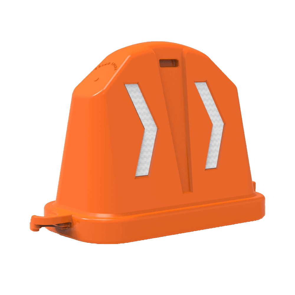 Barrera con sistema modular de fácil armado. Su estructura anidable permite apilarlas eficientemente, reduciendo hasta un 75% los costos de transporte y almacenamiento. Fabricada en polímero. Color: naranja. Cuenta con protección UV. Cada cara del cuerpo incorpora dos chevrones grabados. Puede integrarse un peso en la base. Su sistema de ensamble macho-hembra permite un libre paso del viento evitando vuelcos. Medidas: Largo total: 112.0 cm. Ancho: 45.5 cm. Alto: 70.0 cm. Reflejantes 2 caras. Peso barrera con base: 8.500 kg.