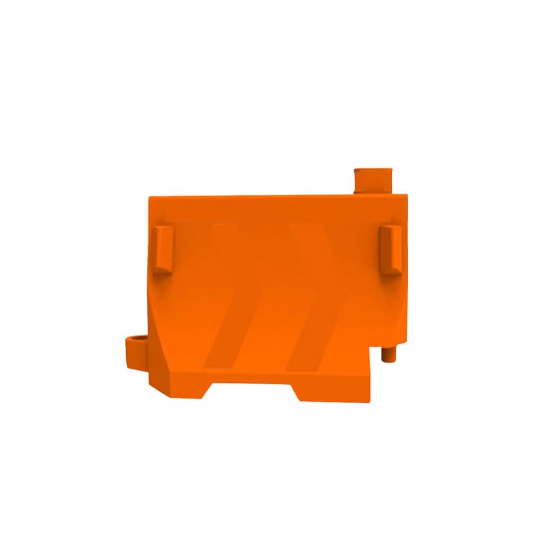 Descripción: Barrera de protección vial - rotomoldeada, fabricada en polietileno de media densidad. Color: Naranja. Medidas: Largo: 100 cm. Ancho: 50 cm. Alto: 78 cm. Para usar vacía o con lastre, ensamble fácil y rápido. Sin reflejante.