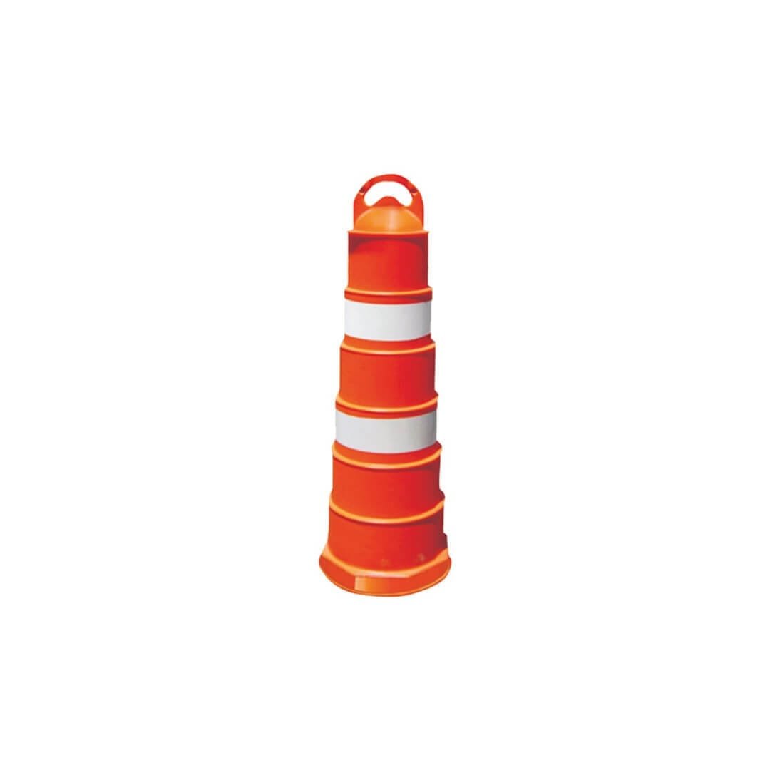 Descripción: Fabricado en polietileno. Color: Naranja. Medidas: diámetro de base: 41.0 cm. diámetro superior: 20.0 cm. Alto: 105.0 cm. Dos reflejantes grado ingeniería. No incluye base.